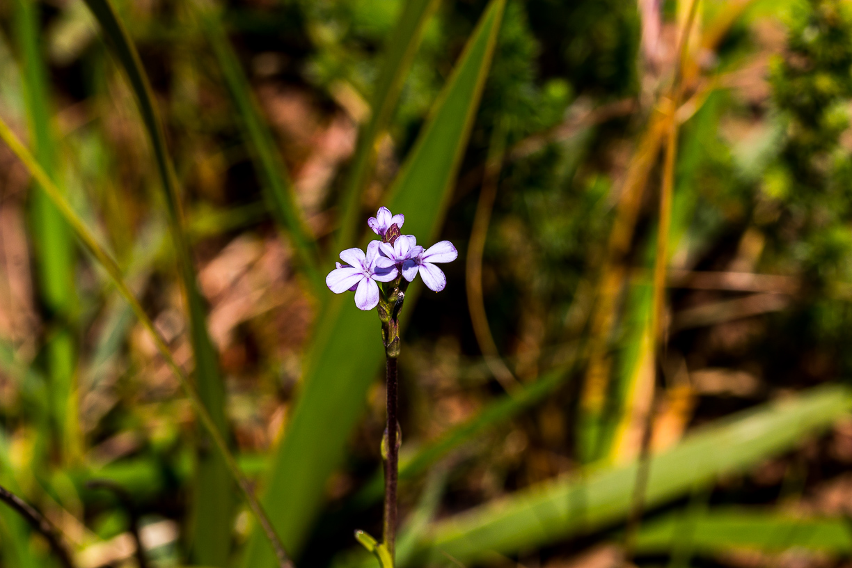 We headed down the slope towards the wetland in the valley below, finding some splendid Chamaecrista comosa clustered around an old termite mound. There were several Convolvulus natalensis, all proudly displaying their greeny-yellow flowers. On the upper slopes were Muraltia lancifolia, Orthochilus foliosus and a white form of Orthochilus ensatus.